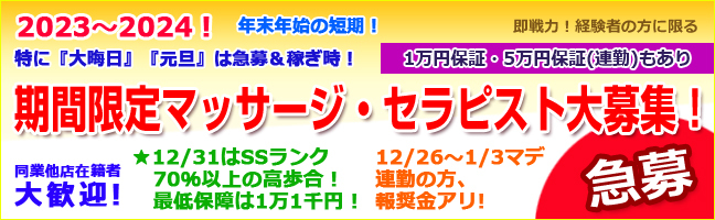 2023~2024! 年末年始の短期!期間限定マッサージ・セラピスト大募集!